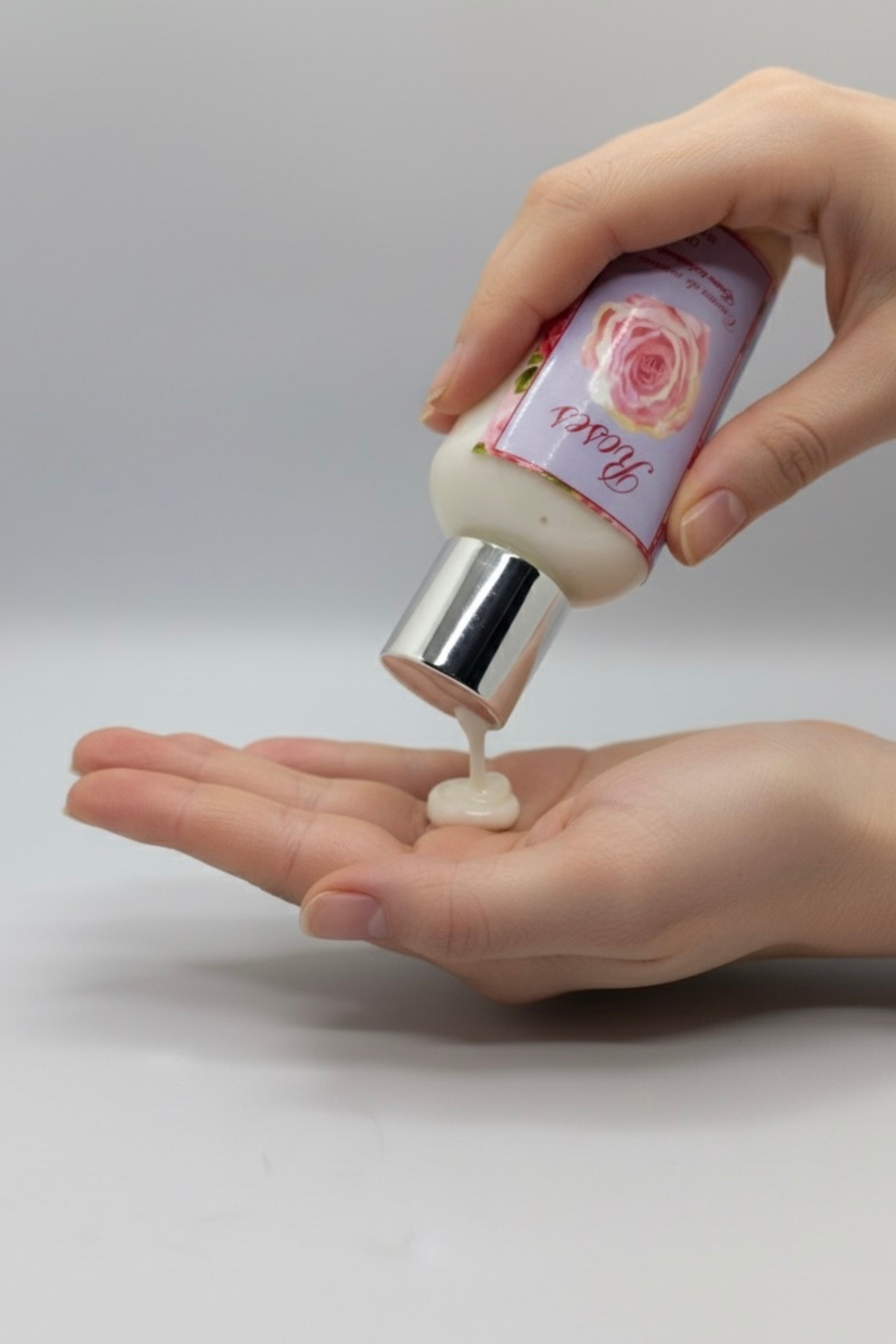 Ingredientes de Crema de manos: Agua, aceite de almendras, ácido esteárico, aceite vegetal, glicerina, manteca de karite, fragancia pétalos de rosas.