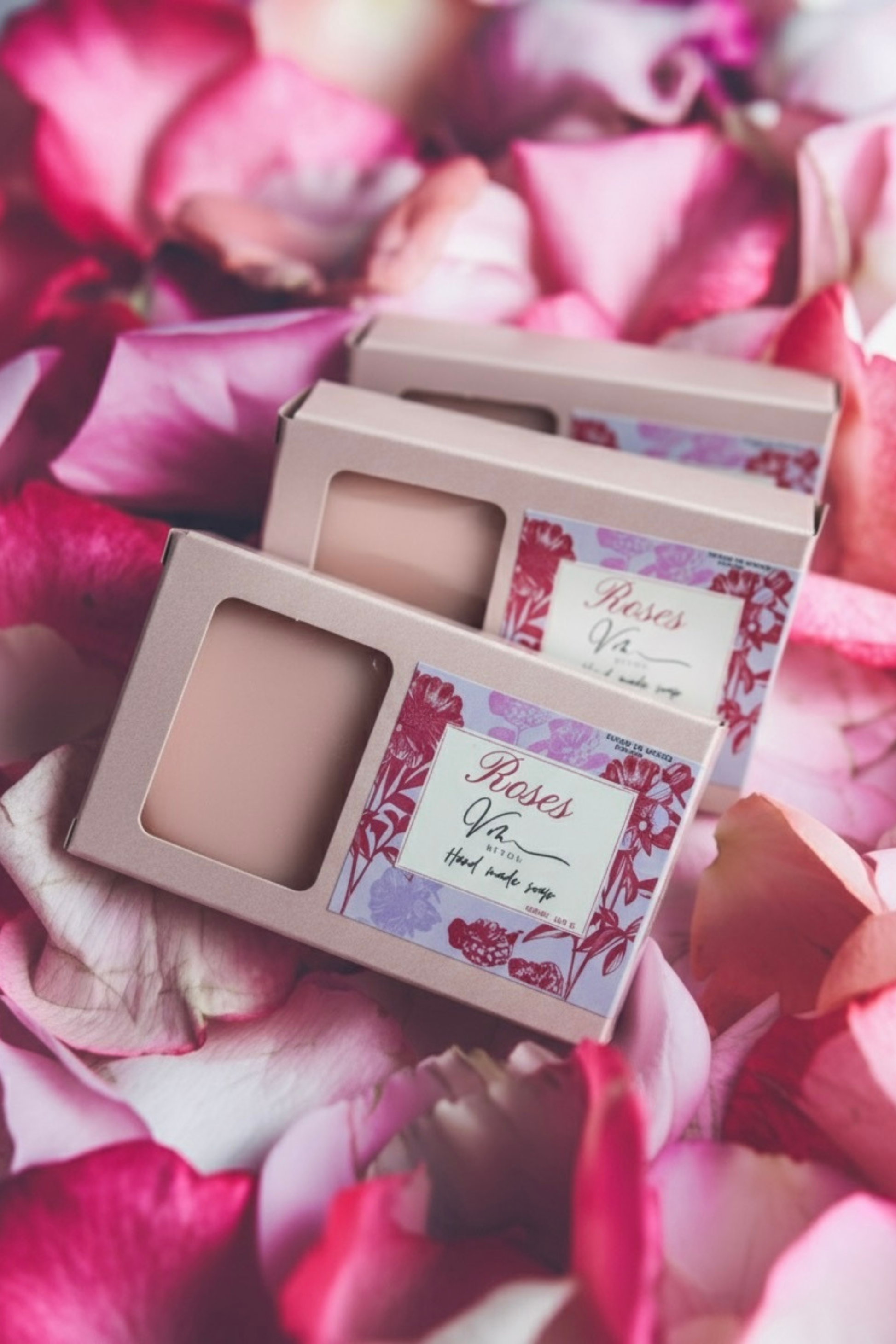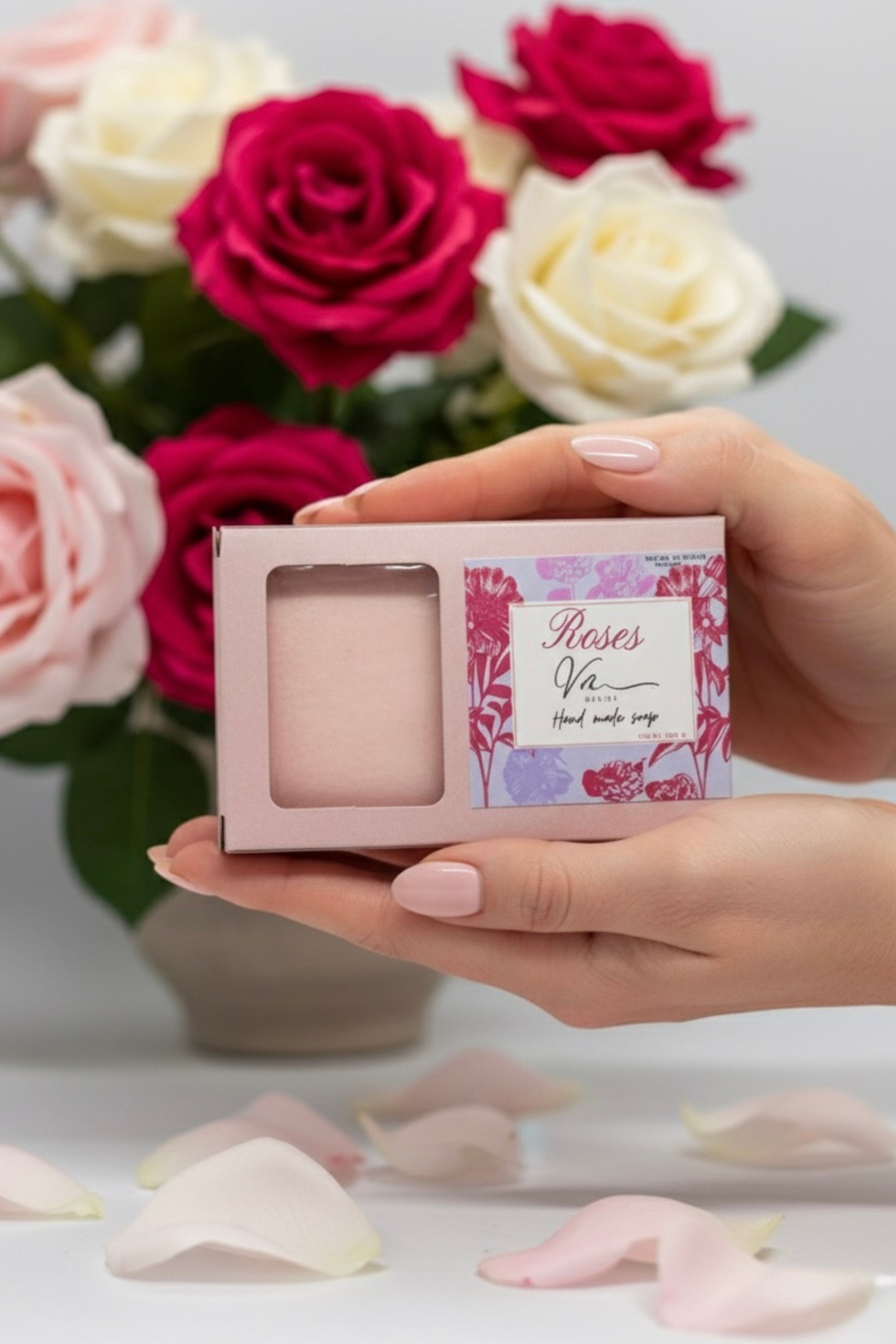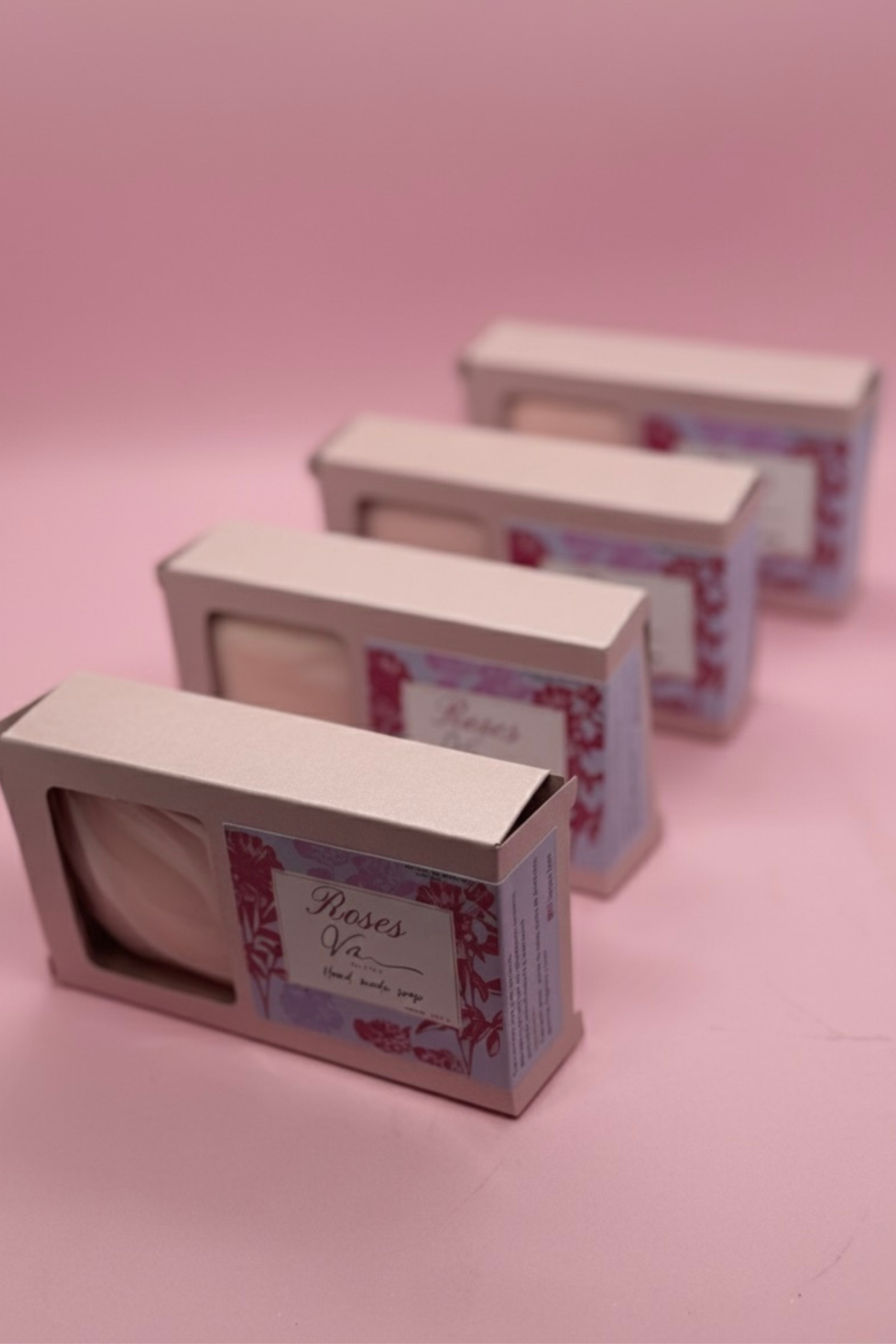 Ingredientes: Pasta para jabón, Aceite de rosas, Aceite de almendras (Prunus dulcis), glicerina, Fragancia y color.